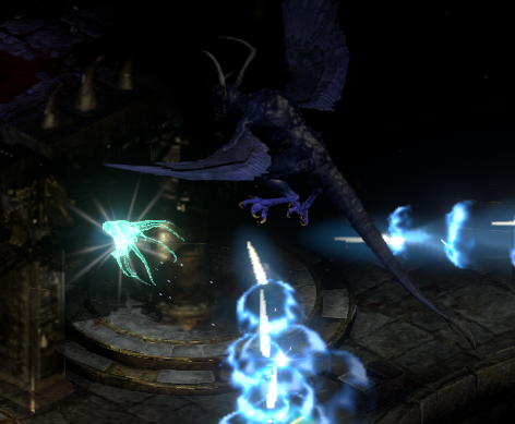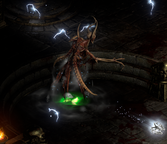 闪电风暴- 首领在攻击或受伤时,偶尔会施放闪电球风暴,这些闪电球爆炸后会释放出多道强力雷电。