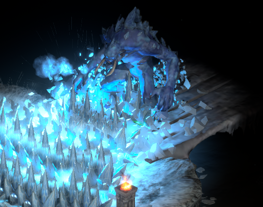 冰霜乱舞- 首领可以召唤冰霜箭新星,这些箭矢不会立即造成伤害,而是黏附在表面上,并在短时间後寻找附近的玩家。