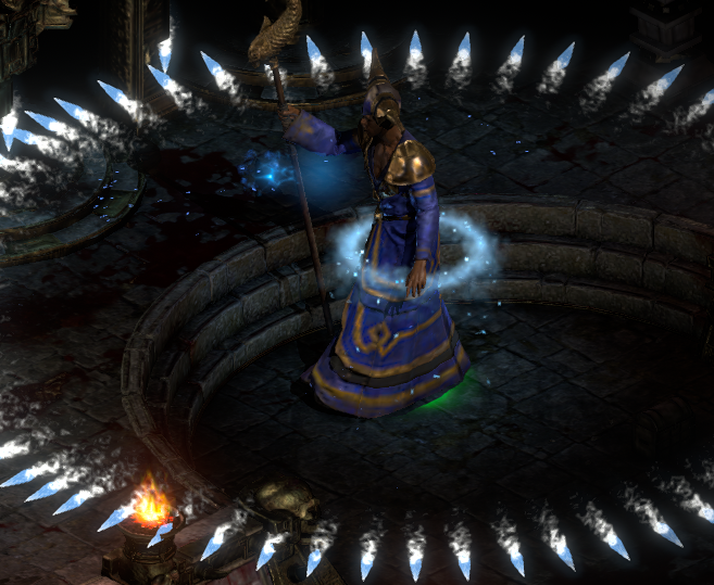 聚合冰霜新星- 当首领接近你时,会施放一波冰霜箭新星,这些箭矢会黏附在墙壁上,并在短时间後寻找附近的玩家,因此请务必保持移动。此外,他在受伤时也有几率施放此技能。